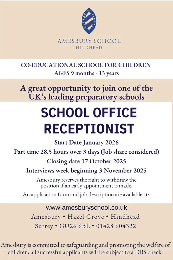 A note about your data, the school’s data protection team consists of the Head, Bursar and Head of IT. Our address is FOI@amesburyschool.co.uk Please direct postal correspondence to: Data Protection, Amesbury School, Hazel Grove, Hindhead, Surrey, GU26 6BL.