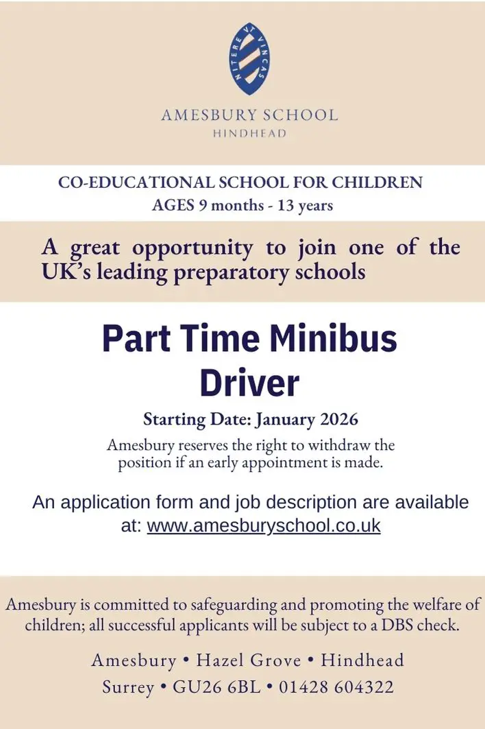 Please submit your Employment Application form along with a covering letter to recruitment@amesburyschool.co.uk