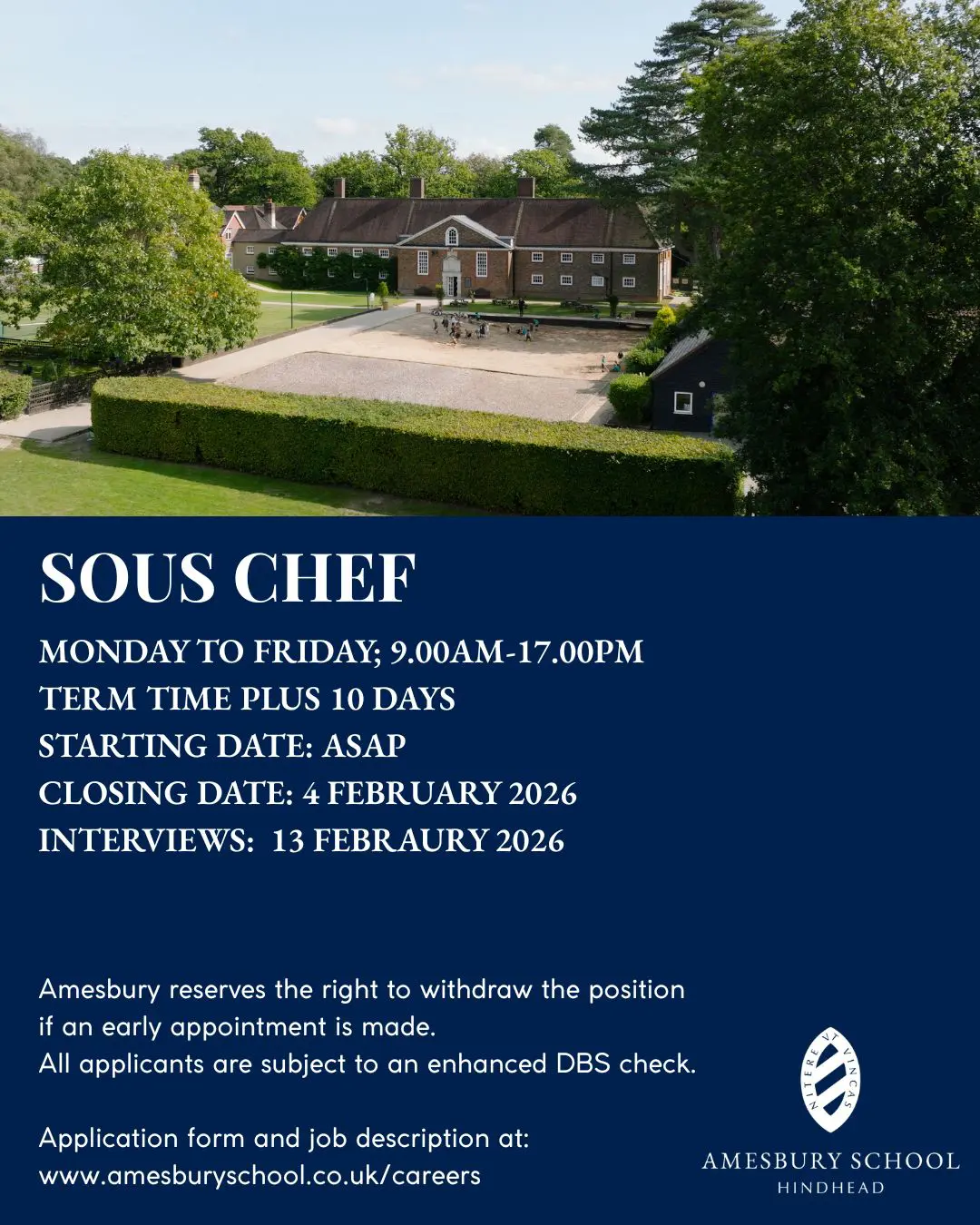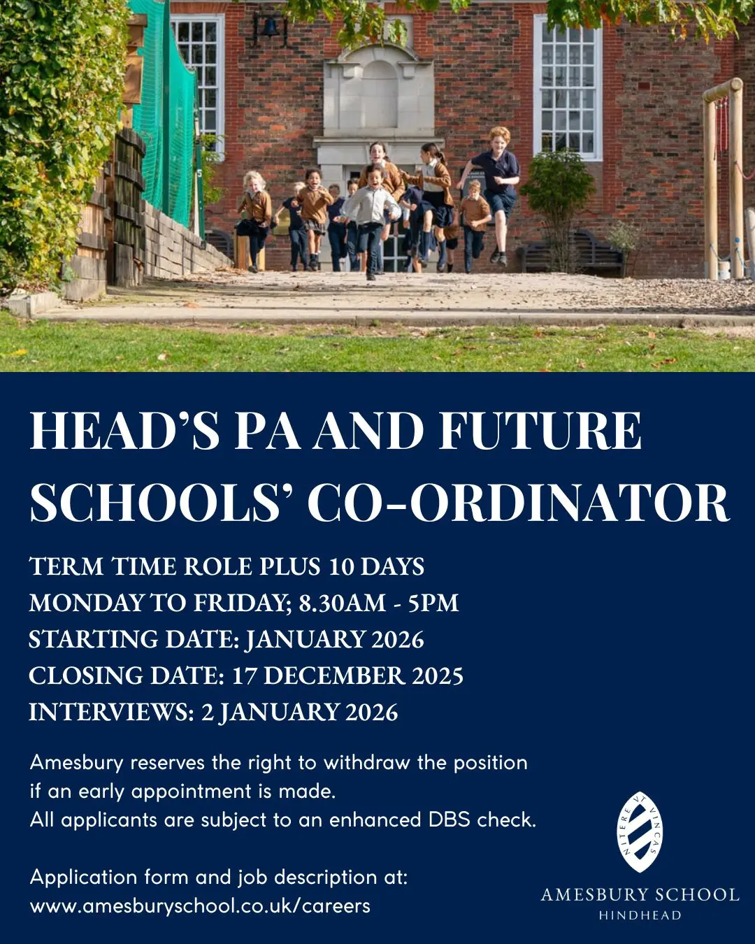 Please submit your employment application form along with a covering letter to recruitment@amesburyschool.co.uk